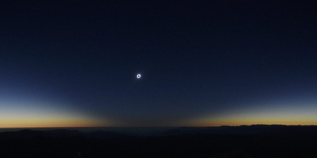 The sky with the total eclipse corona and the umbra during the July 2, 2019, total solar eclipse photographed from the Cerro Tololo Inter-American Observatory, Chile (David Sliski, as part of the Williams College Expedition).